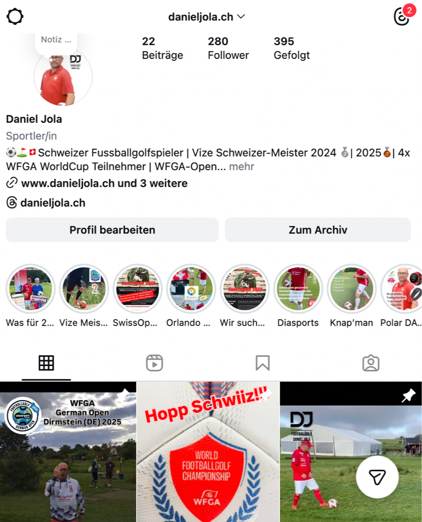 Daniel bleibt dabei fokussiert und selbstkritisch, ohne den Blick nach vorne zu verlieren: „Es ist kein Untergang – man muss hohe Ziele haben, um sie erreichen zu können. Auch wenn ich die schwierigen Trainingsmöglichkeiten (Distanz zum Fussballgolf-Platz) in der Schweiz berücksichtige und auf die letzten drei Jahre zurückblicke, in denen international vor allem die Weltmeisterschaften in Deutschland 2022, Dänemark 2023, Ungarn 2024 und Tschechien 2025 mit guten Leistungen im Vordergrund standen, muss ich mich nicht verstecken.